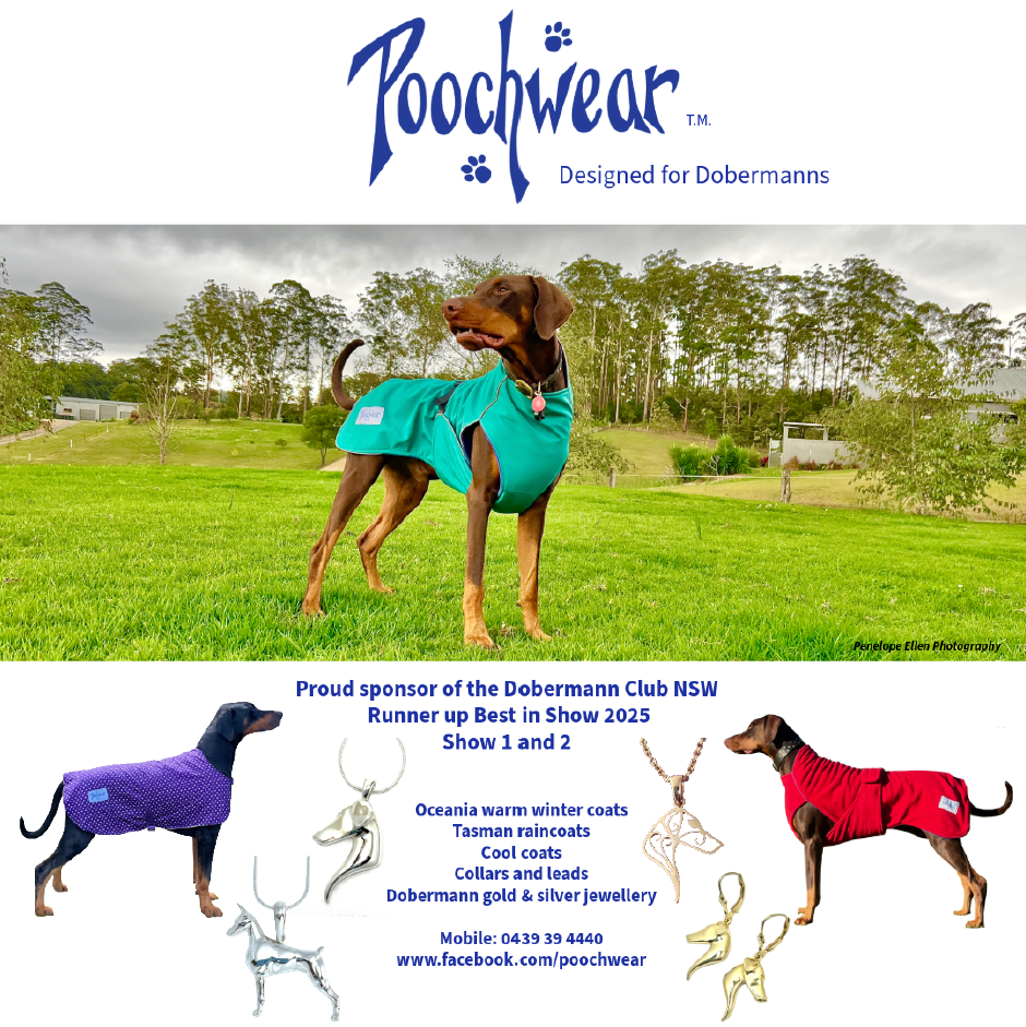 The Dobermann Club of NSW Inc. (Est. 1963), is affiliated with DOGS NSW and National Dobermann Council (Australia)